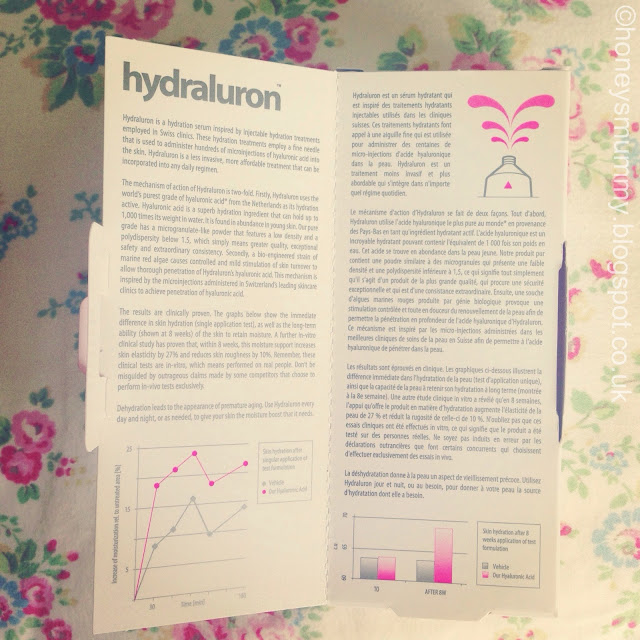 I do occasionally have dehydrated skin, and sometimes oily, especially when I was a long haul air hostess, and I only wish I had been able to use Hydraluron then. I have been using it everyday for around a month but probably don't need to use it as often as my skin isn't that dry. My skin does seems smoother and the skin tone more even, and is never dry even with the cold Autumn days and central heating coming on. My foundation seems to last longer too as it now has a good base to sit upon and after using it for a month I have definitely noticed an overall improvement in my skin.